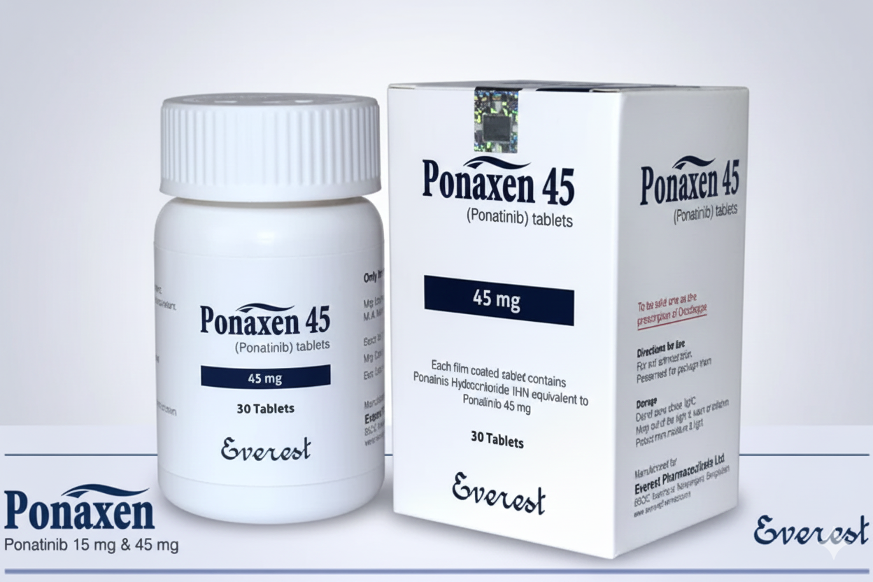 PONAXEN 45MG (Ponatinib) is a third-generation, orally administered tyrosine kinase inhibitor (TKI) developed for the treatment of adult patients with chronic myeloid leukemia (CML) and Philadelphia chromosome-positive acute lymphoblastic leukemia (Ph+ ALL), particularly in cases where resistance or intolerance to prior TKI therapies has been observed. Its molecular design specifically addresses the limitations of earlier-generation TKIs by targeting a broad spectrum of BCR-ABL mutations, including the T315I mutation, which is notably associated with therapeutic resistance and poor prognosis in hematologic malignancies. Ponatinib exhibits potent inhibitory activity against both native and mutant forms of BCR-ABL, positioning it as a critical therapeutic option for patients who have exhausted conventional treatment alternatives. Ponaxen 45mg price in Pakistan is between PKR 120000-150000.